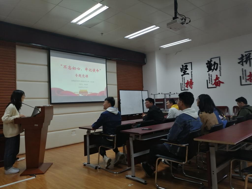 遗传育种与繁殖研究生第二党支部在第一综合楼B座114会议室开展了关于“不忘初心,牢记使命”专题党课。党课由支部书记孙欢玲主讲,全体党员参加了本次党课。