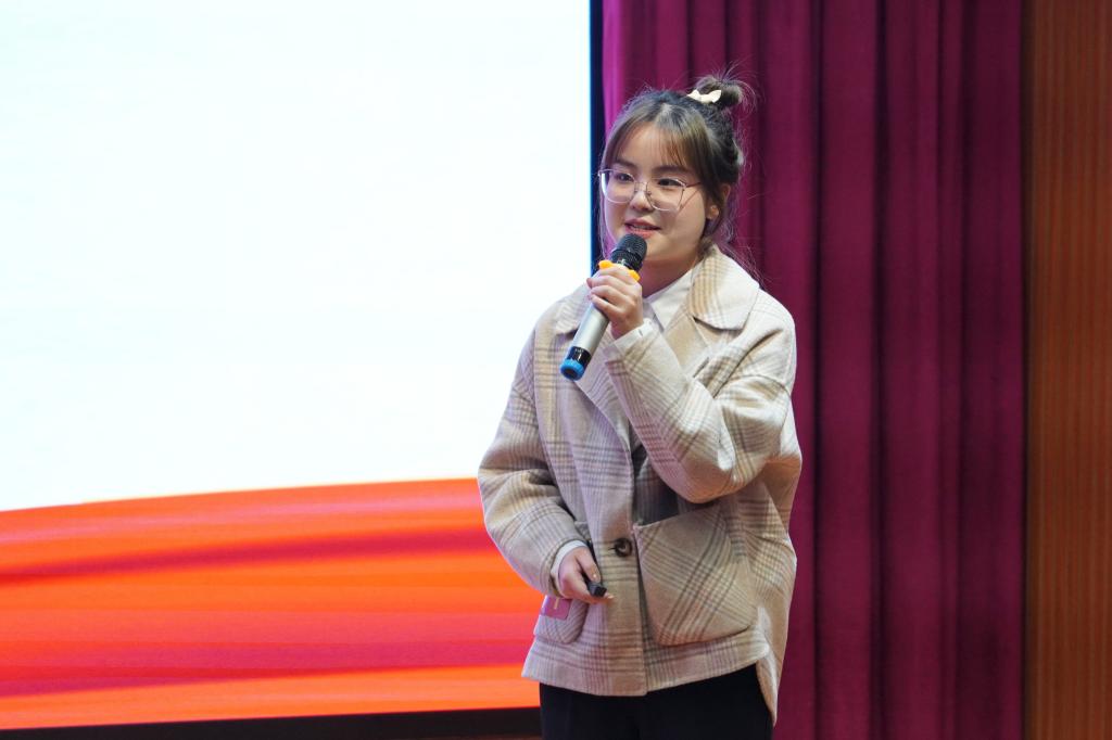 此外,她还强调党史学习的重要性,“党史学习教育永远在路上,一切向前走都不能忘记走过的路,走得再远,走到再光辉的未来,也不能忘记走过的过去”。最后,她向在场同学发出“吾愿以吾辈之青春护卫着盛世之中华”的号召。