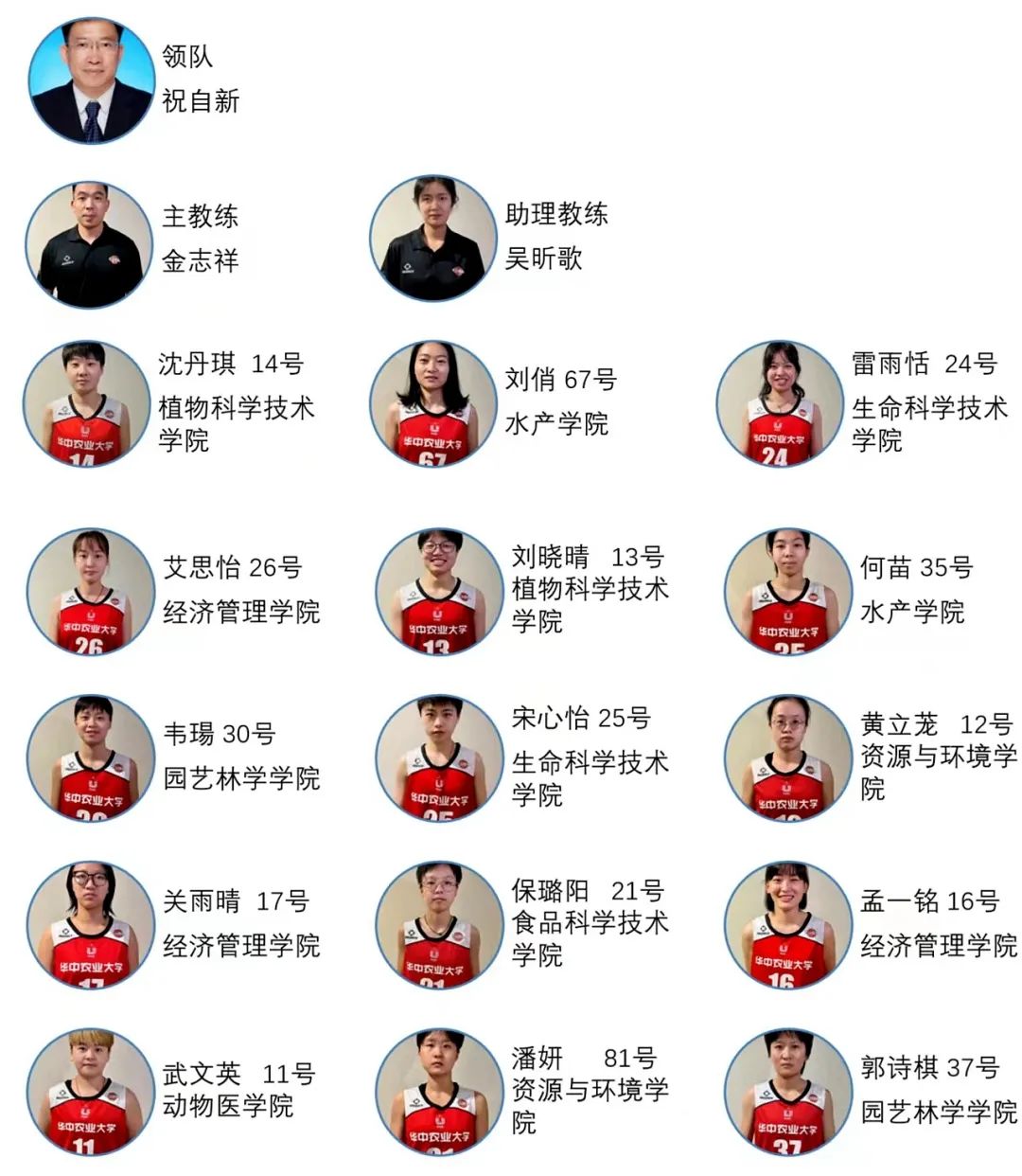 华中农业大学女子篮球队成员