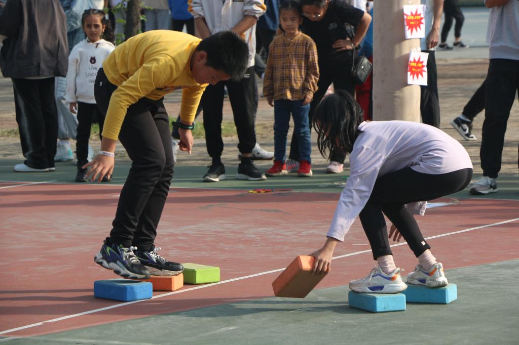 参与者熟悉比赛规则后有序排队,参与比赛。参与者不仅包括学校师生,同时还吸引了众多小朋友。现场气氛活跃,师生其乐融融。秋日暖阳下,他们灵活的身手、矫健的身姿展现了新时代青年青春活力、朝气蓬勃的精神面貌。