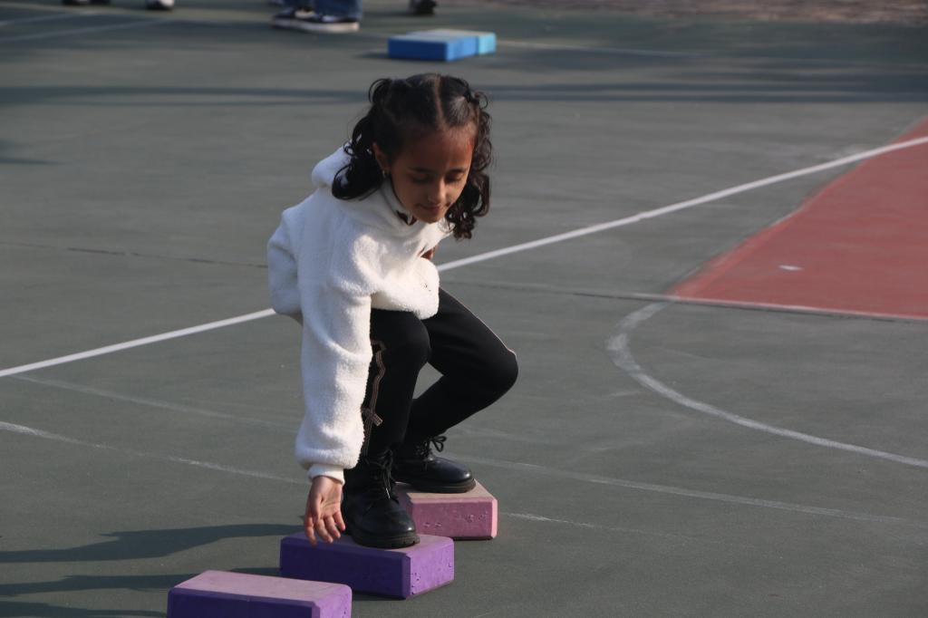 在运动会体育嘉年华中承办“摸石过河”游戏项目。该项目由五楼自拍
