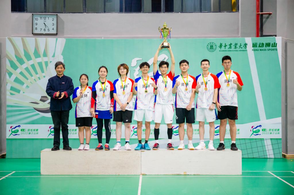 校党委书记高翅为团体赛冠军队伍颁奖后合影(侯国涛 摄)
