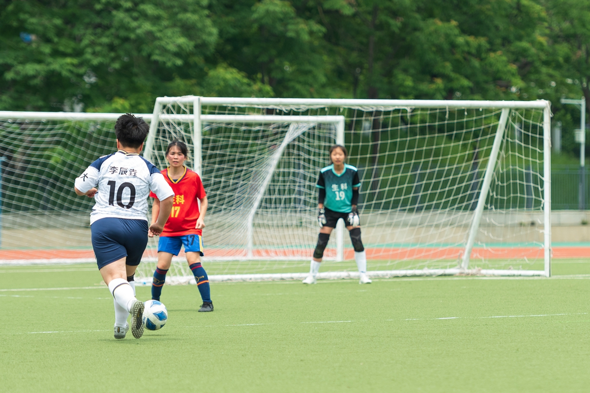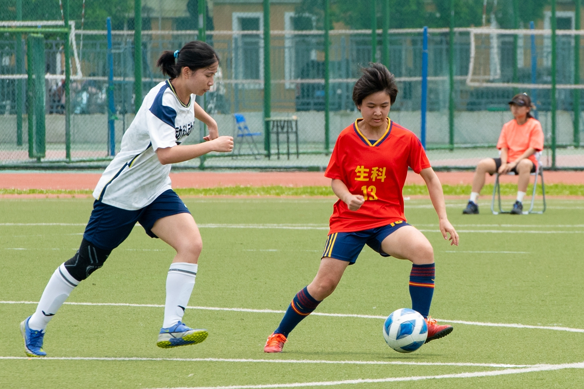 7号刘茜直接中线远射开场,随后场面继续胶着。第59分钟,生科学院迎来绝佳机会,20号罗雅云带球右路渗透传给25号谭草意,后者禁区外晃开对方门将吕英琪劲射,足球打在门柱上弹出,虚惊一场。