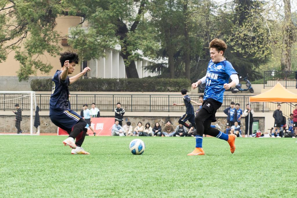 依旧保持绝对的进攻优势,但迟迟无法打开僵局。关键时刻,队长刘佳童站了出来,身为中后卫的他长驱直入,以绝对的个人能力为球队造下关键点球并亲自操刀,稳稳命中,2:0,动科动医男足继续扩大优势至比赛结束。