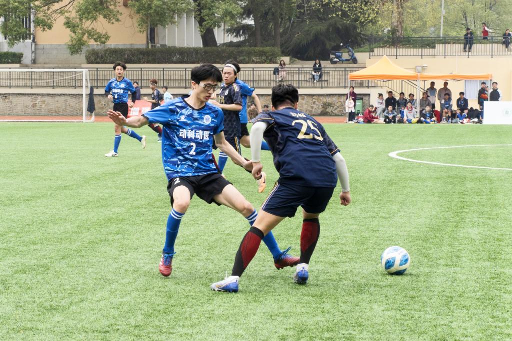 男足便迅速发动进攻,积极推进,全力争顶,一度在对方门线前制造险情。比赛第五分钟,20号方煜博接前场定位球将皮球准确传入禁区中,9号洪一夫灵巧垫射攻入一球。1:0,动科动医男子足球队先拔头筹!上半场,尽管五楼自拍