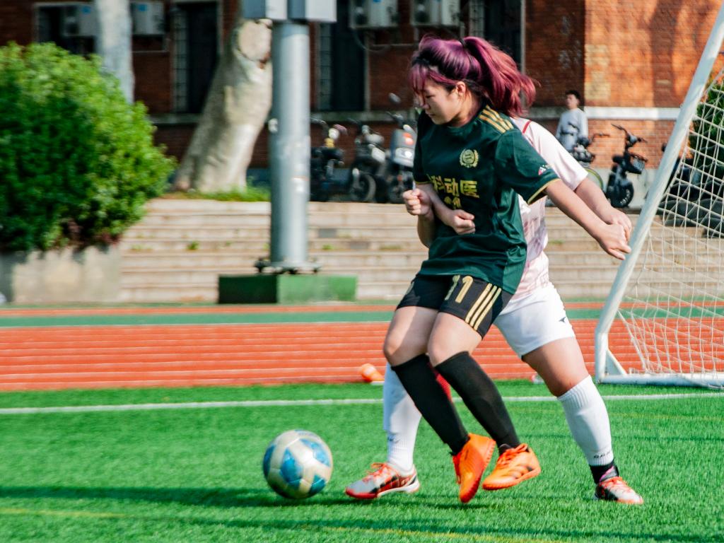 易边再战,4号王明瑶成功突破文法学院队防线,以一记射门,为五楼自拍