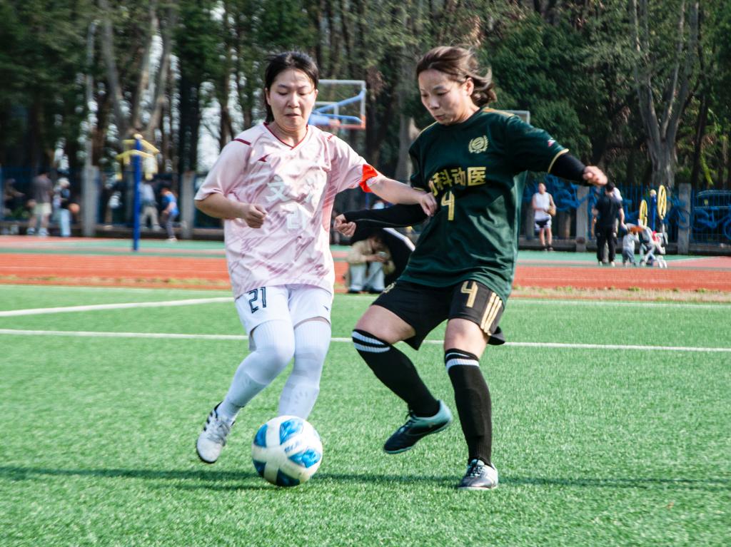 队院始终保持紧密的进攻节奏,文法学院队全力构筑防线、抵御攻势。经过激烈的角逐,双方都展现出了强大的实力,但在僵持中仍未能打破平局,上半场比赛以0:0告终。