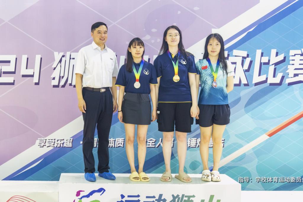 女子50米蛙泳 陈婧怡 第一名;艾昱君 第六名