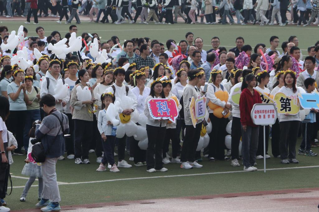 上午8时许,开幕式在万众瞩目中拉开帷幕。15个学院精心组织的方阵,共计一千六百余名学生,身着统一的藏青色短袖院服,步伐整齐、动作规范,伴随着激昂的广播操音乐,展现出青春的风采与活力。其中,来自五楼自拍