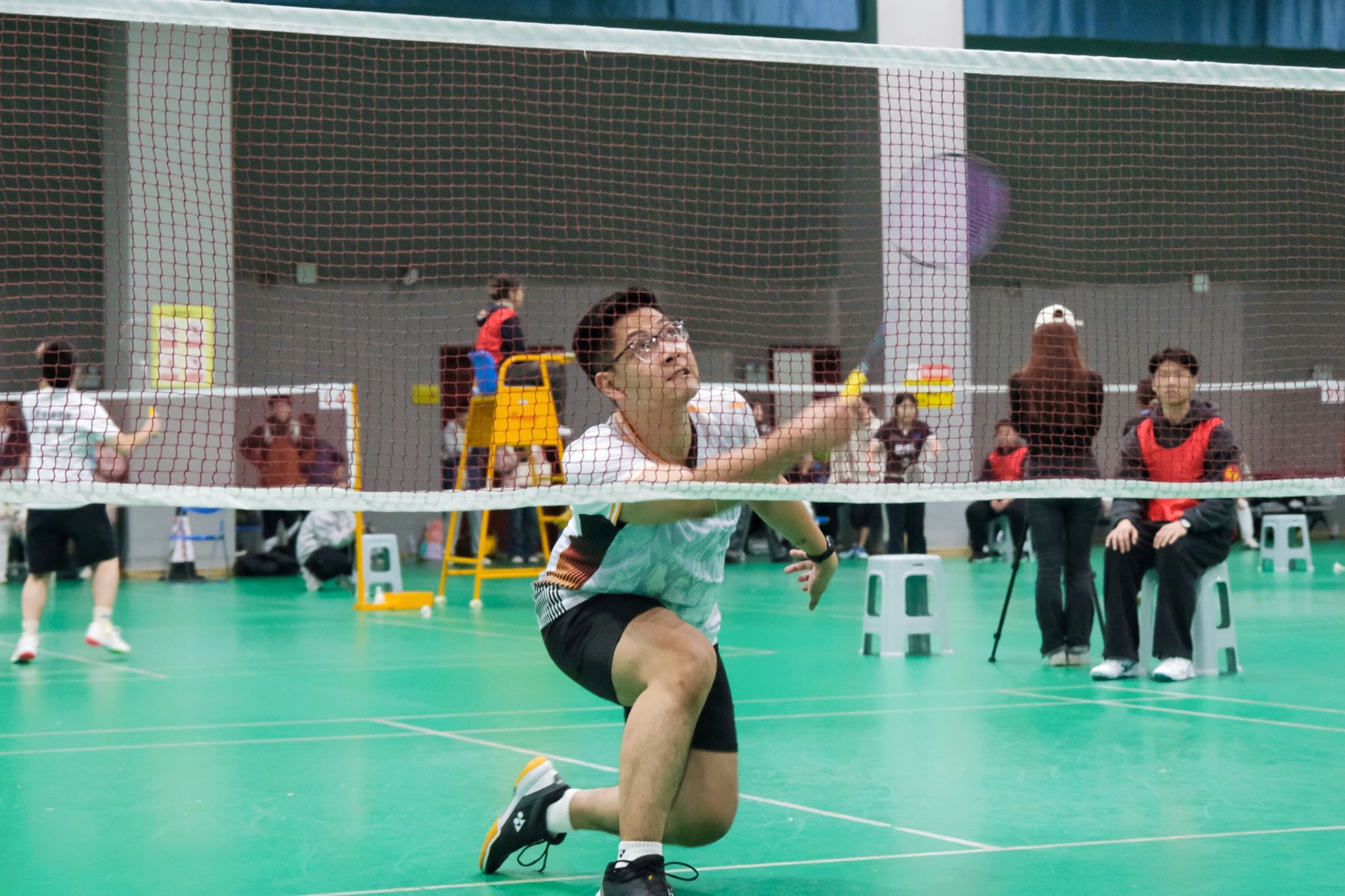 本届“新生杯”羽毛球赛为团体赛,分为男单、男双、女单和女双四个项目。上午八点三十分,随着裁判一声令下,比赛正式开始。运动员们奋力拼搏,你来我往,高潮迭起,多次出现局点。比赛间隙,运动员们积极热身,熟悉场地,为后续比赛做好充足准备。经过多番激烈比拼,五楼自拍