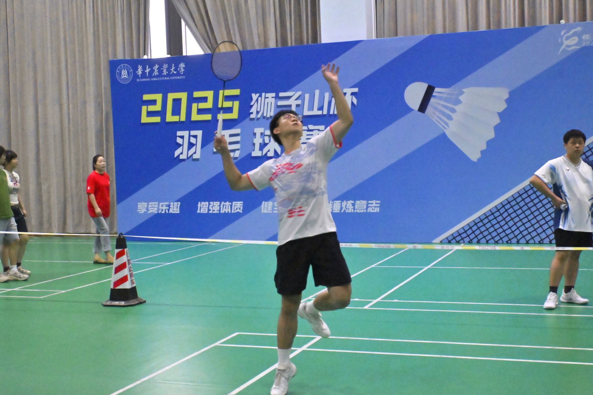 本届“狮子山杯”羽毛球赛分为男单、男双、女单、女双、师生融乐赛、团体赛六个项目。19日上午8:30,随着一声清脆的击球声,比赛正式拉开帷幕。选手们迅速进入状态,迅猛有力的扣杀,巧妙细腻的吊球,攻防转换间尽显精湛球技,现场气氛高潮迭起。