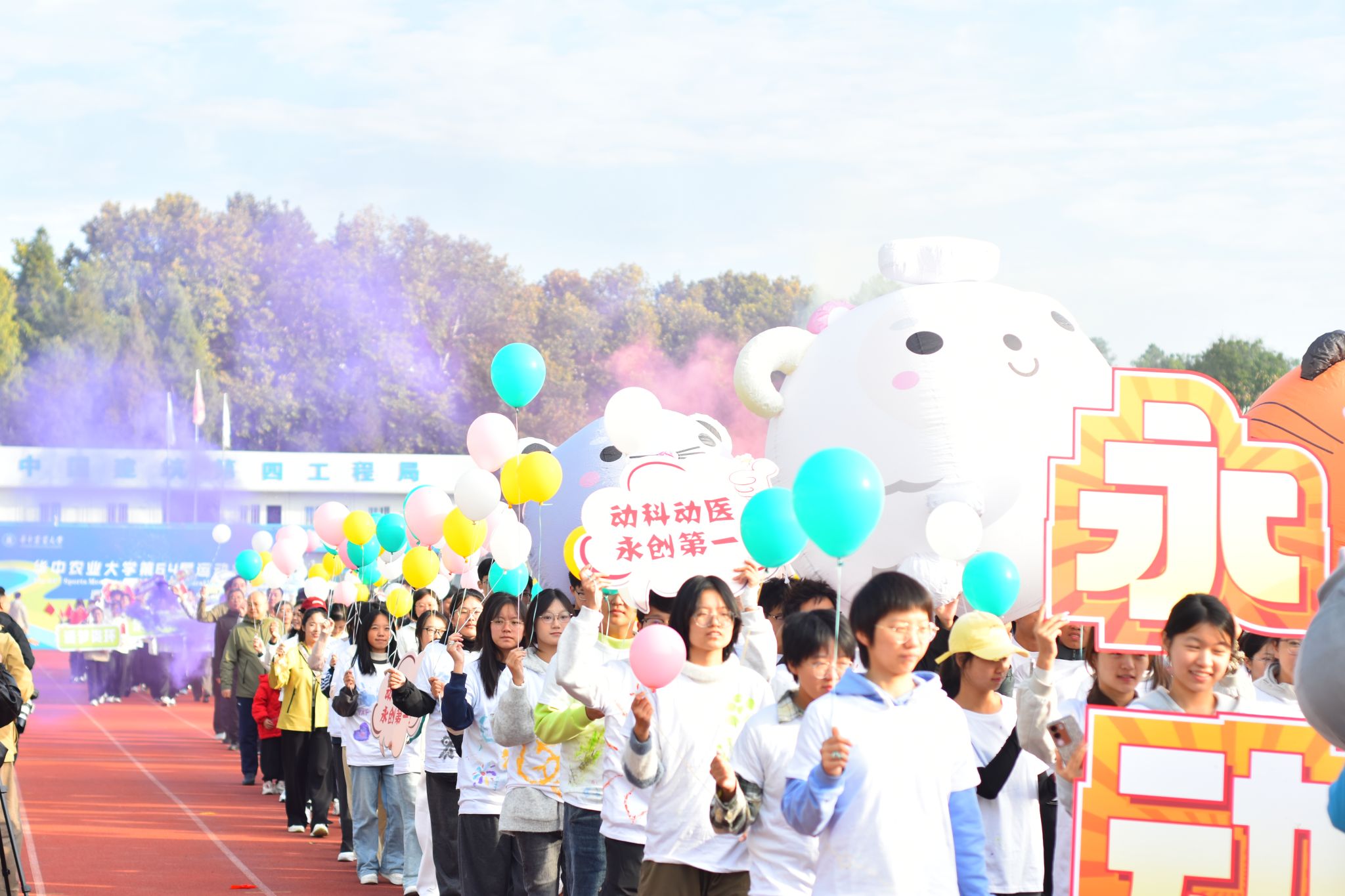 乐声响起,运动员、裁判员代表率先入场,随后各学院及学校各单位代表队伴随讲解词昂首阔步走过主席台。各代表队结合自身特色组成各具特色的方队,创意与活力引发观众席阵阵轰鸣。“动科动医,永创第一”,五楼自拍