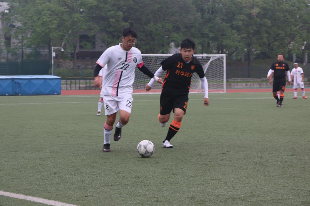 21号蔡怀远与园艺林学学院22号王洵在激烈拼抢球权(通讯员 郭睿阳 摄)