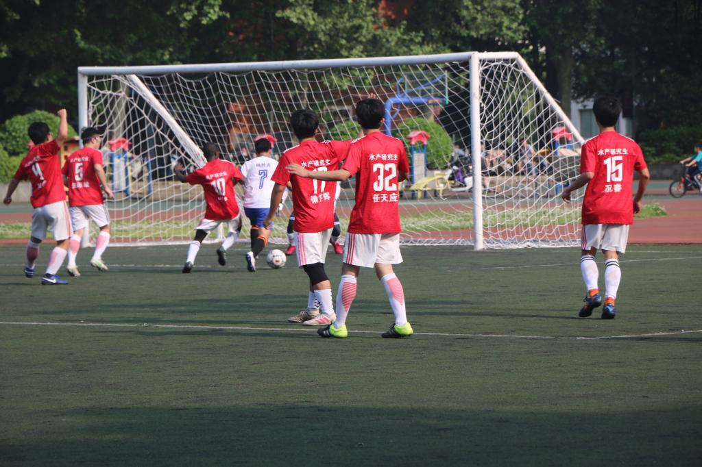 队后卫失误,水产学院队前锋获得单挑守门员的绝佳机会,成功破门。可惜停球时手球犯规在先,该进球被判无效。