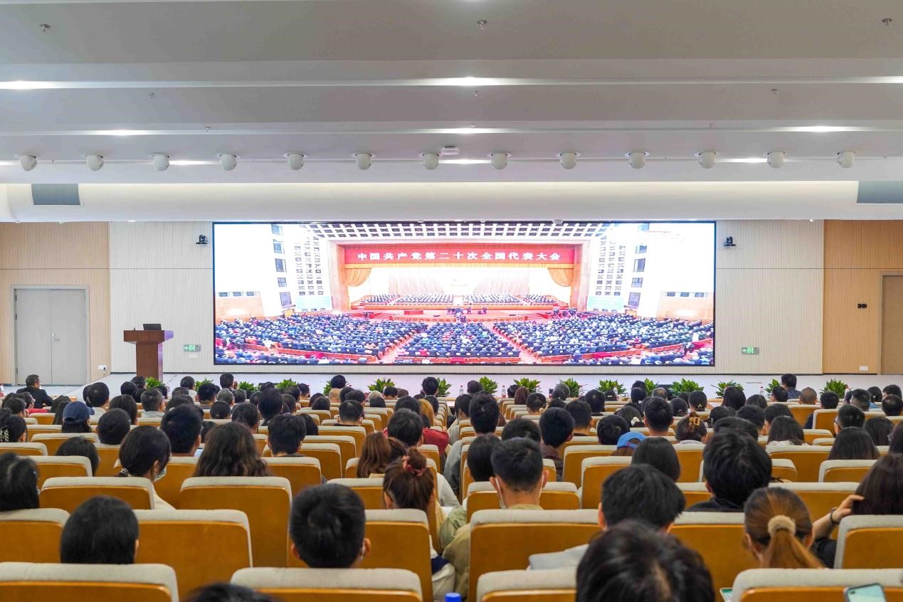 (学院师生在四综F101报告厅集中观看党的二十大开幕式直播)